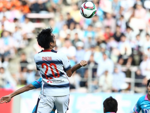 Spieler Maeda zielt mit einem Kopfball aufs Tor -