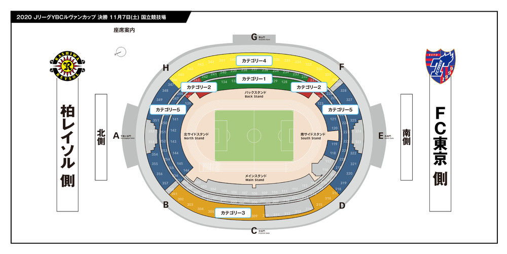 ・In Kategorie 5 (Nordseite) sind „Unterstützung“ für FC Tokyo sowie das Tragen und Verwenden von FC Tokyo Trikots und Fanartikeln nicht gestattet. In allen anderen Sitzbereichen ist das Tragen von FC Tokyo Trikots und Fanartikeln erlaubt.
