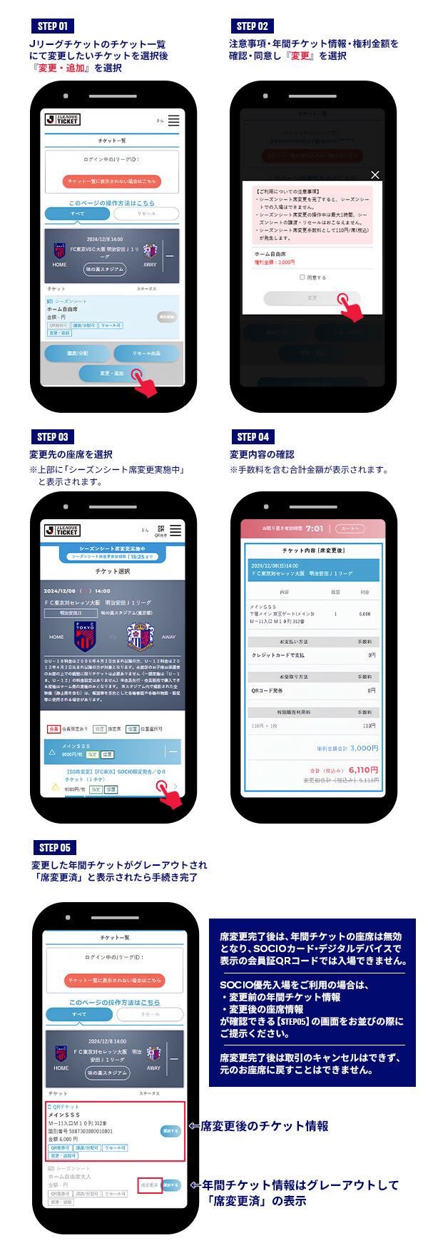 Bitte zeigen Sie beim Anstehen die vor der Änderung gültigen Jahreskarteninformationen sowie die nach der Änderung gültigen Sitzplatzinformationen an, die in "Mein Ticket" bei J.League Ticket angezeigt werden.