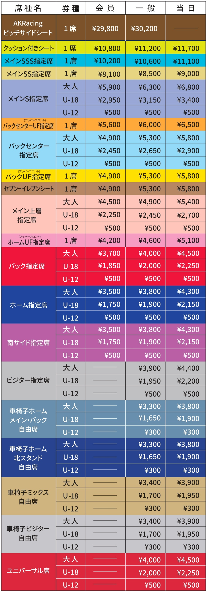 ※Ein Sitzplatzwechsel von anderen Sitzkategorien als den Sondertickets ist nicht möglich