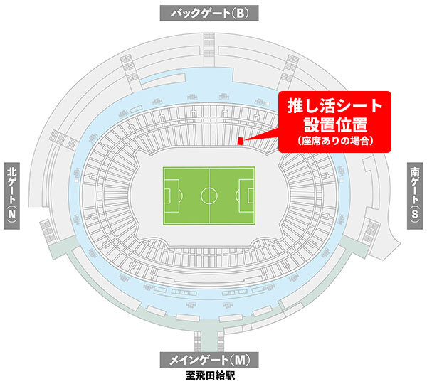 ・Die Rückennummern-Sitzplätze, an denen die „Oshikatsu-Sitze mit Sitzplatz“ eingerichtet sind, sind Unterstützerbereiche von FC Tokyo. Das Tragen von Fanartikeln der Gastmannschaft und das Anfeuern der Gastmannschaft sind nicht gestattet.
