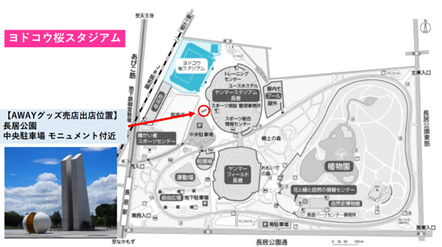 YODOKO SAKURA STADIUM (Nagai Park) Zentraler Parkplatz, in der Nähe des Denkmals