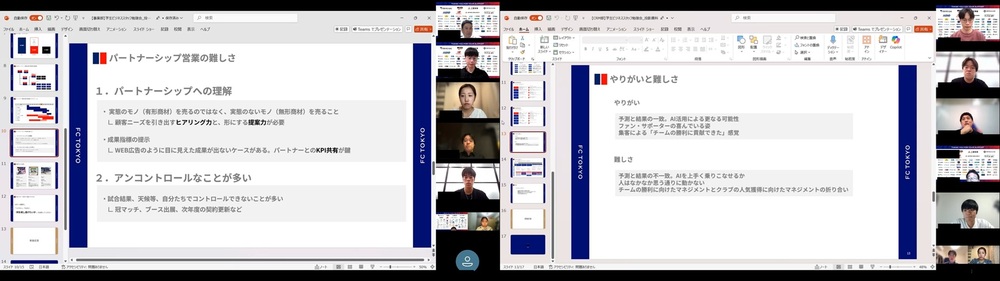 In dieser Studienveranstaltung wurden Vorträge zu den Fachgebieten der jeweiligen Abteilungen gehalten, darunter Partnervertrieb, Kommunikationsgestaltung mit Fans und Unterstützern sowie praktische Nutzung von Daten. Dies bot den studentischen Business-Mitarbeitern die Möglichkeit, umfassendes Wissen über Tätigkeiten zu erlangen, mit denen sie normalerweise wenig in Berührung kommen. Außerdem ermöglichte das Verständnis der Clubführung aus der Perspektive mehrerer Abteilungen den Studierenden, die Bedeutung ihrer eigenen Aufgabenstellung sowie die Wichtigkeit der Zusammenarbeit im gesamten Club besser zu verstehen.