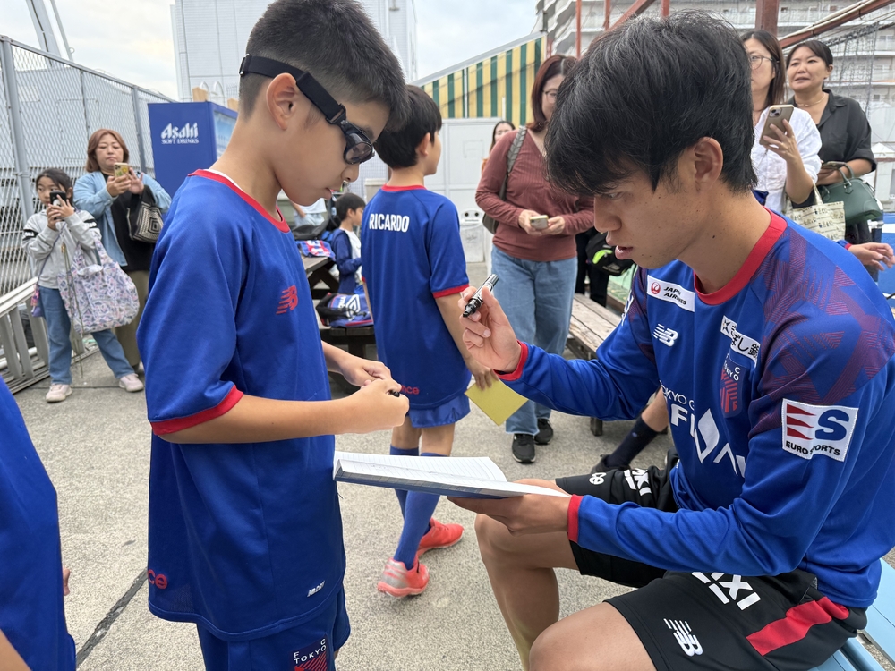 Ob Schüler, die immer im Ajinomoto Stadium anfeuern, oder solche, die dort noch nie ein Spiel gesehen haben – alle wurden begeisterte Fans von Spieler Takahashi und sagten: „Ich möchte ihn im Ajinomoto spielen sehen!“