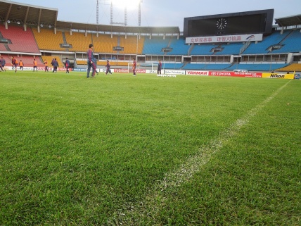 午後はチームの到着受け入れを行い、夕方からは公式行事である「チームマネージャーズミーティング」に出席しました。Jリーグでは試合当日にマッチコミッショナー、両チーム監督・実行委員・運営担当、審判が集まってスケジュールの確認など短時間のミーティングを行いますが、ACLのような国際試合では試合前日に行うのが通例です。「サッカーは世界共通」とはいえ、それぞれの国のローカルルールは多少なりとも存在することもあり、マッチコミッショナーがパワーポイントを使ってACLの様々なレギュレーションを確認していきます。