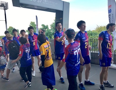 広島戦の翌日には、こちらも営業推進部が中心となって企画したビッグフレームス交歓会を開催しました。ここで何かアウェイ8連戦の壮行ができないかな…?と部内で話し合い、ロッカールームからピッチに向かっていく選手を送り出すように、この8連戦をファン・サポーターのみなさんのハイタッチで送り出したい!ということで会の最後にそういった時間を設けることにしました。500人を超える方々なので、どうやってスムーズに誘導できるか懸念していましたが、みなさまのご理解・ご協力でスムーズに実施できホッとしました。永井選手がカメラを持ってグルっと一周した様子がTwitterにアップされていますので、ぜひご覧ください。