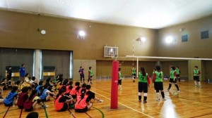 体力作りや基礎練習と平行して、この時期は主に中学生を対象としたバレーボール教室も行っております。