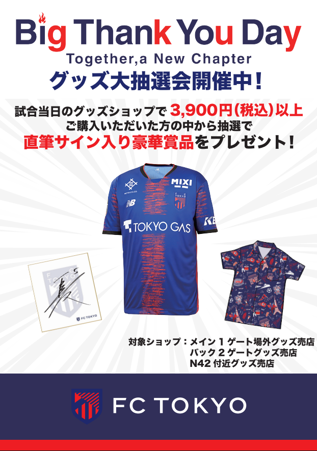 On Saturday, December 6, 2025, at the Meiji Yasuda J1 League Sec. 38 match vs Albirex Niigata (2:00 p.m. kickoff / Ajinomoto Stadium), we will hold a goods booth and Gachapon corner.