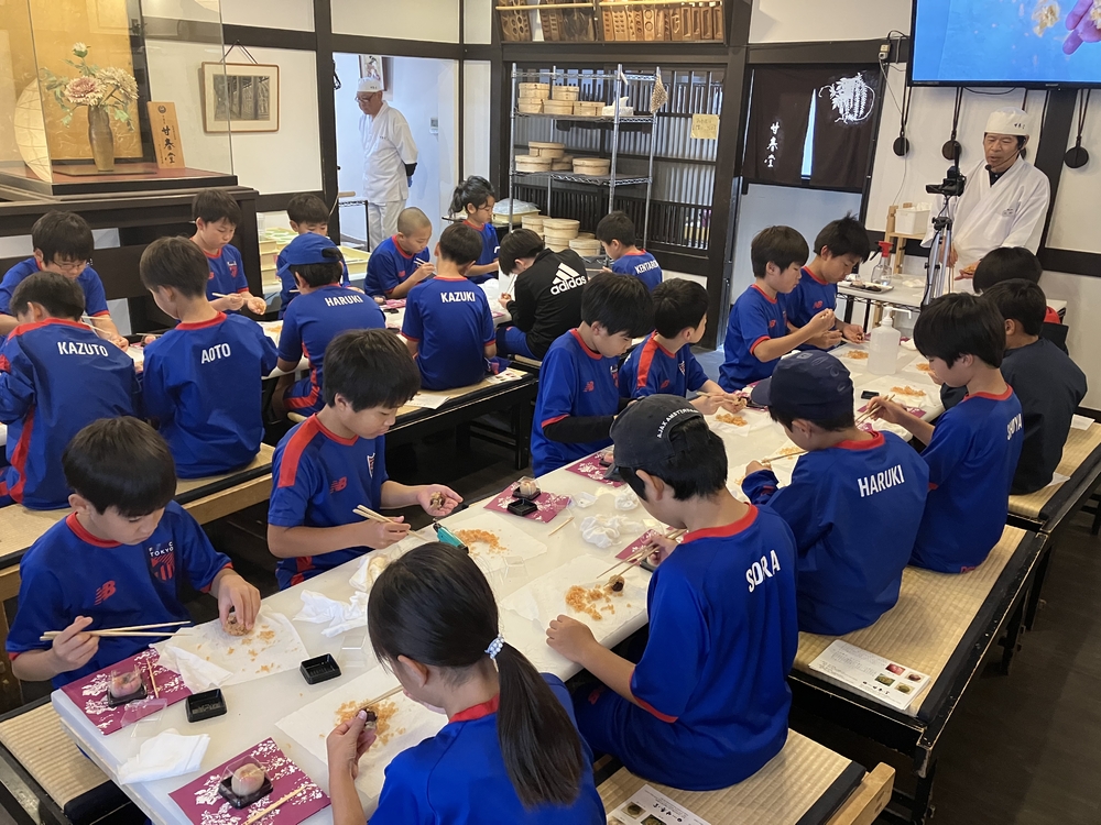 Finally, everyone watched the master making traditional Japanese sweets, and the children were excited, saying "Amazing!!" at the master's craftsmanship! At the end, we took a group photo with the master in front of the shop.