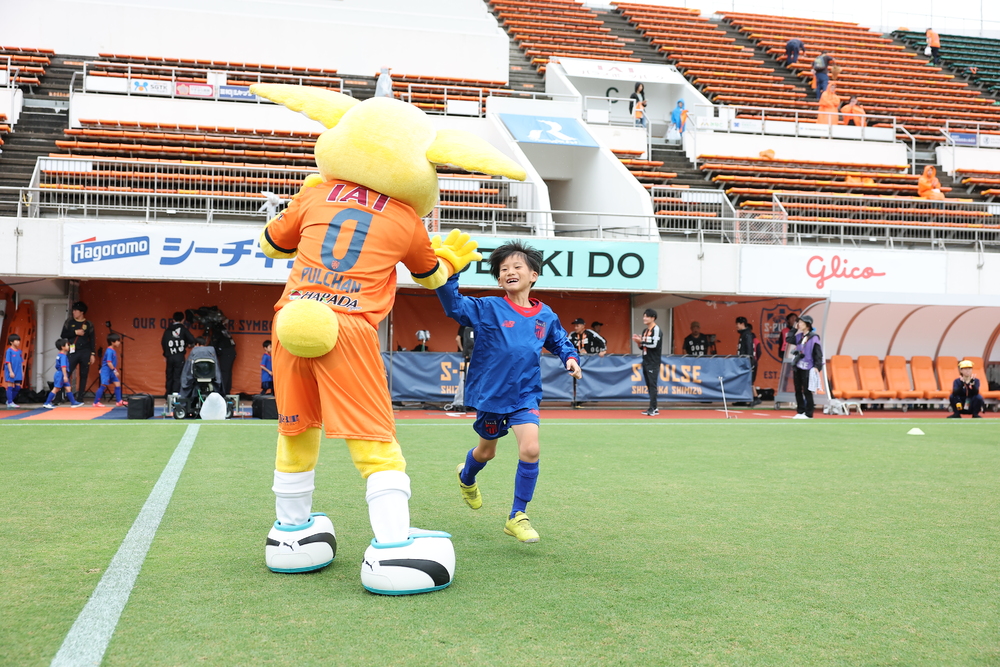 Although it was unfortunately rainy during the preliminary match, 22 school students ran around the pitch at IAI Stadium Nihondaira with all their might!