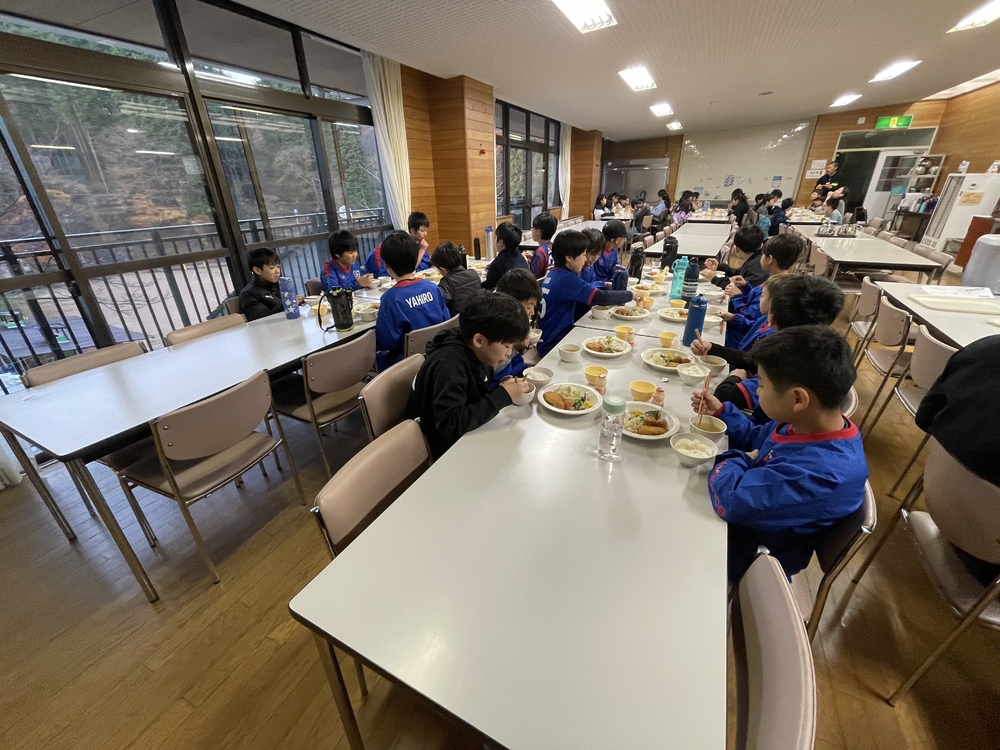 At breakfast, everyone was lively, talking about the exchange match and the stadium tour!