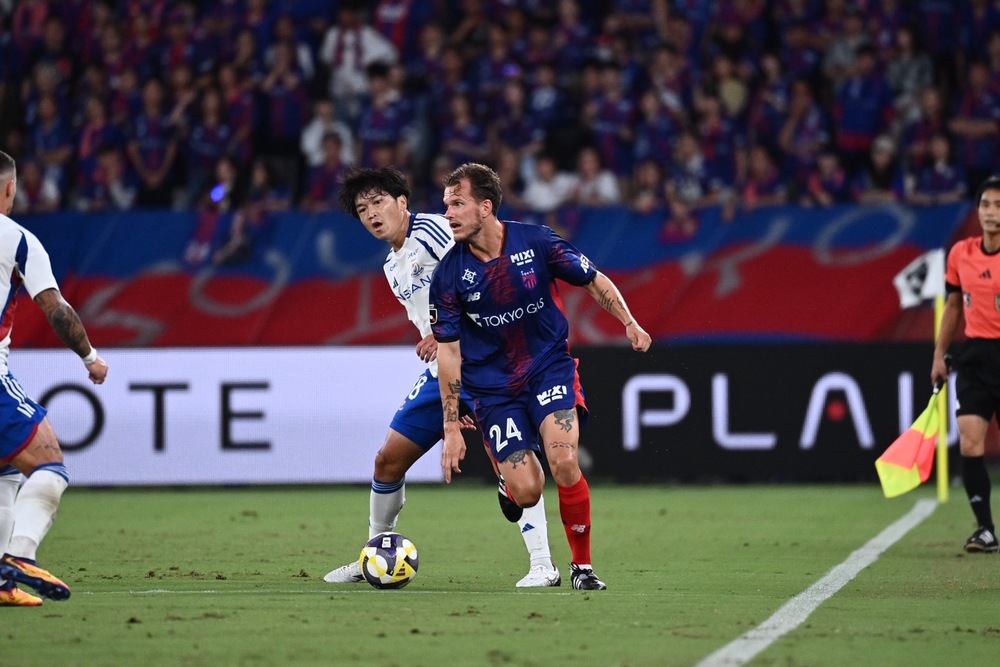 その後もコンパクトな布陣を敷いてきた横浜FMに東京が鋭い攻撃を仕掛けるシーンが増えていく。ファウルで倒されるケースやコーナーキックのチャンスも多くなり、セットプレーからどう仕留めるかも試合の行方を左右することになりそうだ。