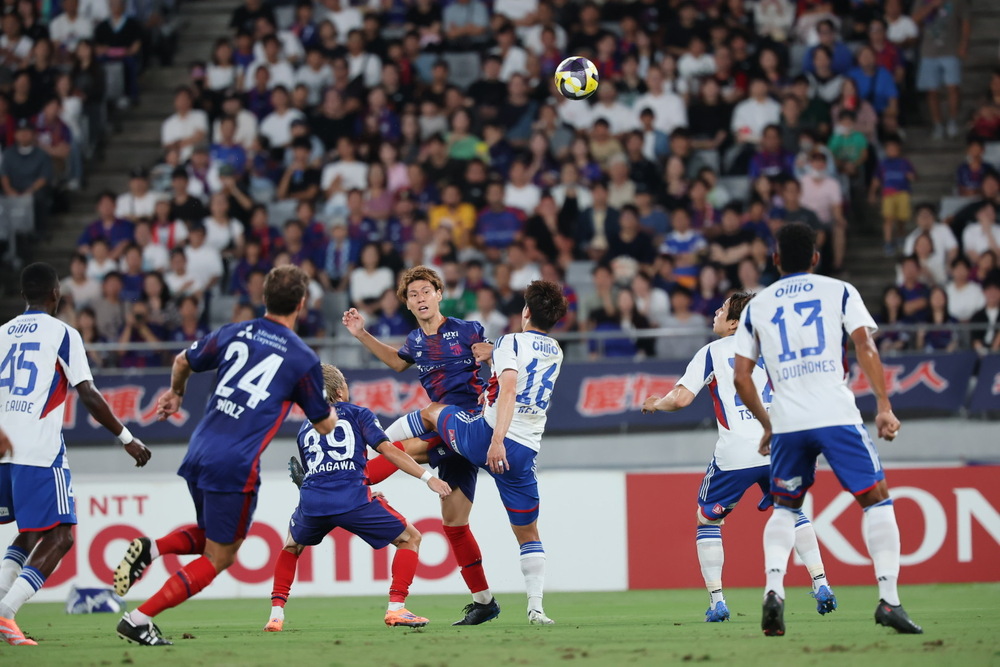 3連勝を収めた前節のアビスパ福岡戦からスタメンを6人変更。ゴールキーパーにはキム スンギュ選手、最終ラインは右から室屋成、土肥幹太、アレクサンダー ショルツ、長友佑都の各選手が並び、ボランチは高宇洋選手と橋本拳人選手。アタッカーは右に遠藤渓太選手、左に俵積田晃太選手が入り、2トップはマルセロ ヒアン選手と仲川輝人選手がコンビを組んだ。