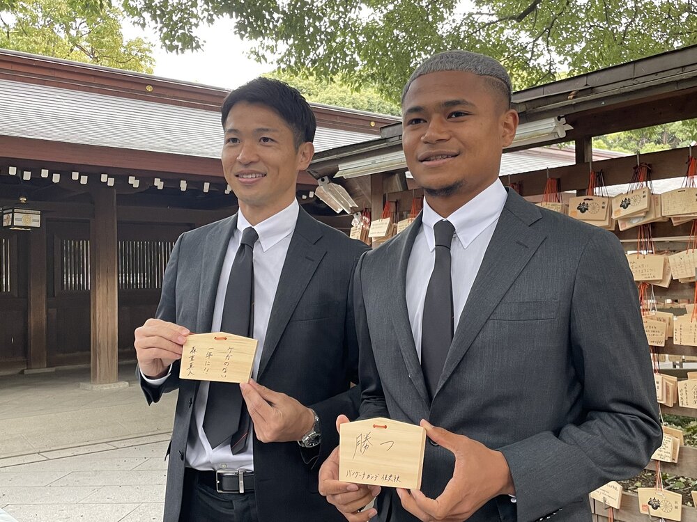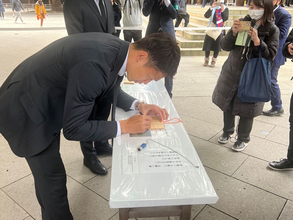 A, 코로나 사태 이전에는 이 시기에 항상 모두 함께 메이지 신궁에 왔기 때문에, 몇 년 만에 이렇게 선수 전원이 함께 올 수 있어서 기쁩니다.