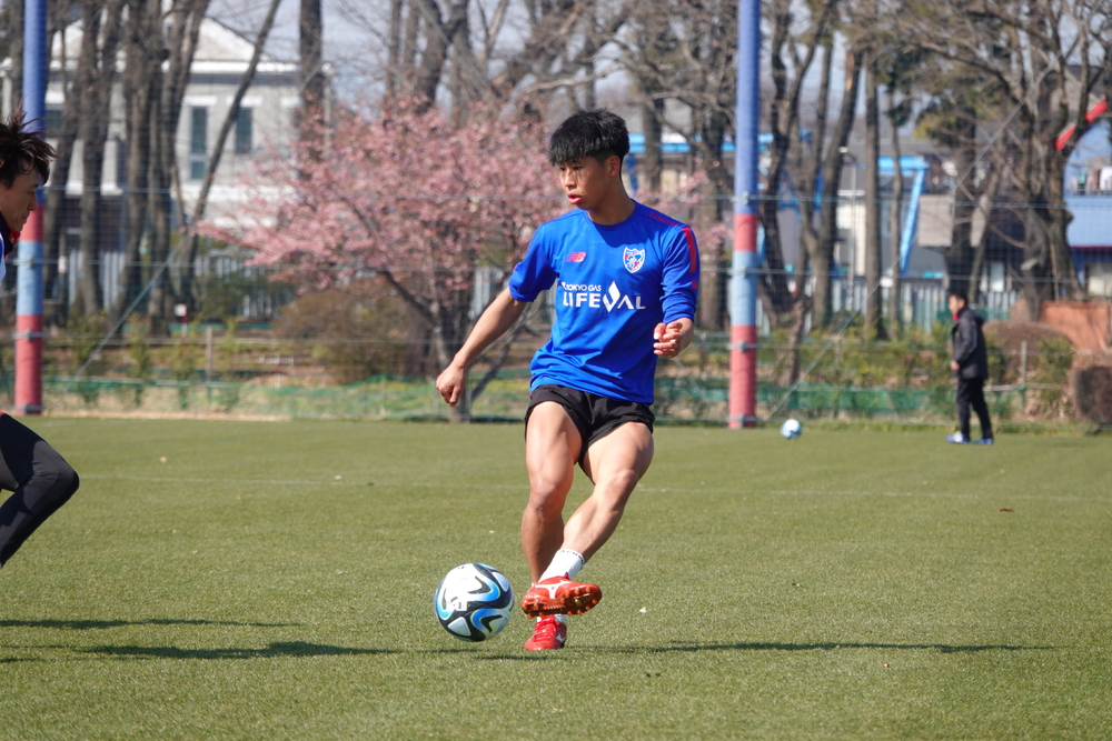 A, 도쿄의 축구는 주변 선수들과의 연계가 요구되기 때문에, 같은 사이드의 선수와 소통하는 것을 중요하게 생각하고 있습니다. 플레이를 하면서 타이밍이 맞지 않는 장면이 있으면 바로 이야기를 나누고, 공을 잃지 않는 것을 최우선으로, 사이드로 벌리는 게 좋았는지, 안으로 들어가 포지션을 낮추는 게 좋았는지 모르는 부분은 바로 물어보도록 했습니다. 제 플레이에 앞으로 나아가는 추진력이 아직 많이 부족하다고 느끼고 있어서, 나가토모 선수에게 기본 훈련을 배우고 있습니다.