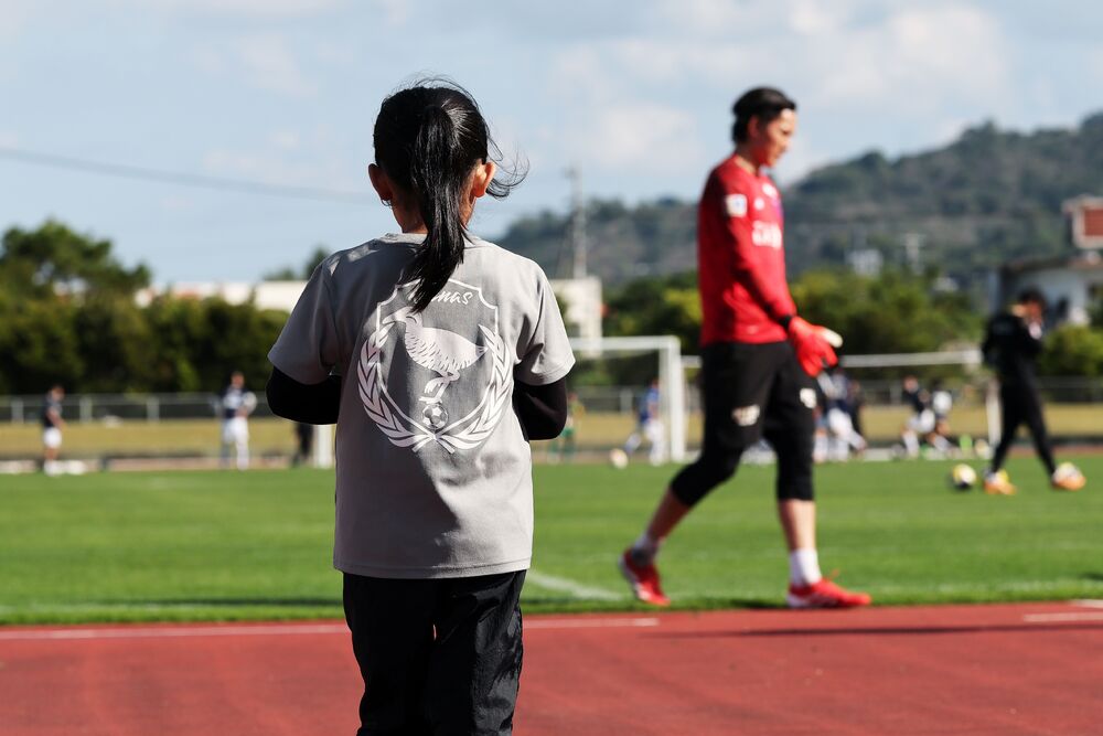 공식 사진작가가 선정한 캠프 사진 기획 『FOCUS ON』. 캠프 7일째에는 부러움 어린 시선으로 피치를 바라보는 축구 소녀를 포착한 이 한 장을 선택했다. 이날, 카이긴 필드 쿠니가미에서 열린 메이오 대학과의 연습 경기에서, 현지의 쿠니가미 FC 퀴너스가 볼 퍼슨을 맡았다. 그녀들이 경기 전 골 뒤에서 볼 줍기 지원을 하고 있을 때, 눈앞에 다가온 오키나와 출신 골키퍼 노자와 다이시 브랜든 선수에게 눈을 크게 뜨고 있었다. 큰 포부를 품고 일본 대표팀까지 올라간 현지의 영웅은 아이들에게 큰 꿈을 주는 존재가 되었다.