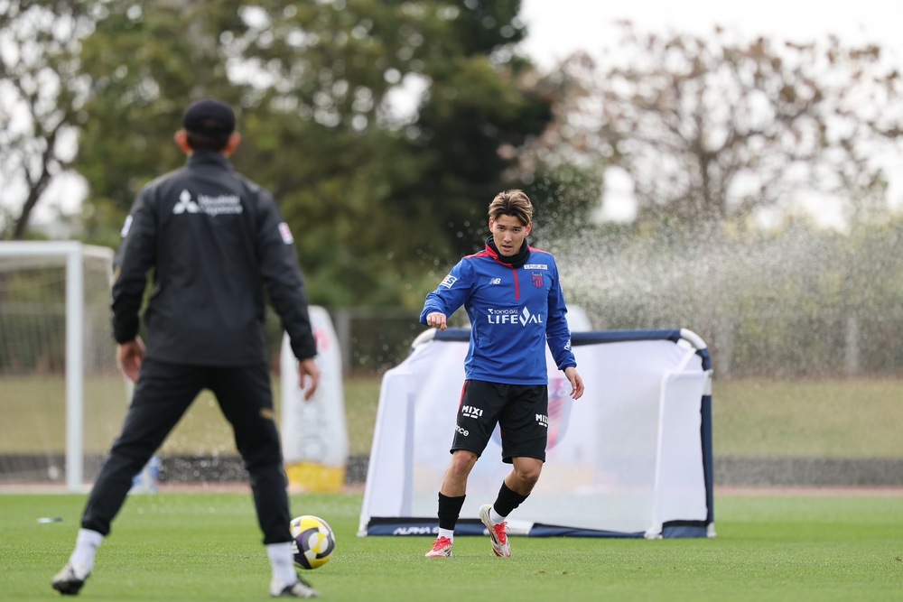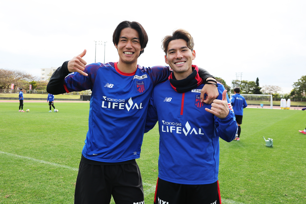 공식 사진작가가 선정하는 캠프 사진 기획 「FOCUS ON」. 오키나와·이토만 캠프 5일째에는 새롭게 청적(푸른색과 빨간색) 유니폼을 입은 사토 미츠루 선수와 오카 텟페이 선수의 어린 시절 친구 투샷을 선택했다. 초등학생 때 버디 SC 세타가야에서 팀메이트가 되었고, 메이지 대학에서 두 사람은 재회했다. 그리고 여러 우연을 거쳐 도쿄에서 다시 같은 유니폼을 입게 되었다. 바로 버디로서 앞으로 청적에서 서로를 지지하며 함께할 것이다.