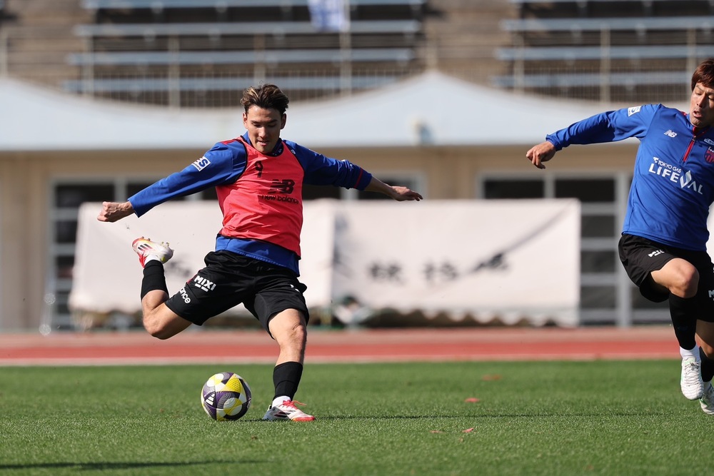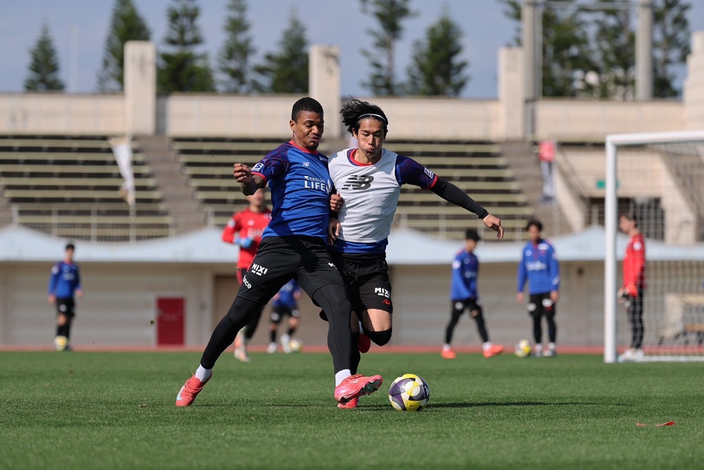A, 그 이야기는 고이즈미 선수에게도 한 적이 있습니다. 가짜 사이드백처럼 중앙으로 들어오는 플레이도 할 수 있고, 거기서 세로로 상대 뒤를 노리는 패스를 내주면 상대도 싫어합니다. 다카 선수와 토키와 선수도 아직 부족하지만, 연습하지 않으면 선택지는 늘어나지 않습니다. 반대로 연습하면 자신감을 가지고 찰 수 있으니 모두에게 "이번 시즌은 해보자"고 말했습니다.