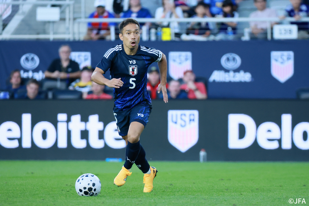 다가온 미국전. 왼팔에 캡틴 마크를 감고 선두로 피치에 입장하는 등번호 5의 모습이 있었다. 포지션은 7월 동아시아 E-1 축구 선수권과 같은 3백의 왼쪽 스토퍼. 일본 대표팀 센터백진에 부상자가 속출하고 있는 것도 있어, "이번 멤버를 봤을 때부터 3백의 왼쪽일 거라고 생각하며 준비해왔다"는 포지션에서 피치에 서게 되었다.