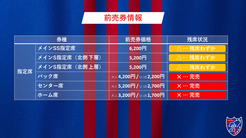 8월 1일(토) FC 도쿄 vs 사가ン 도스(19:00 킥오프/아지노모토 스타디움)