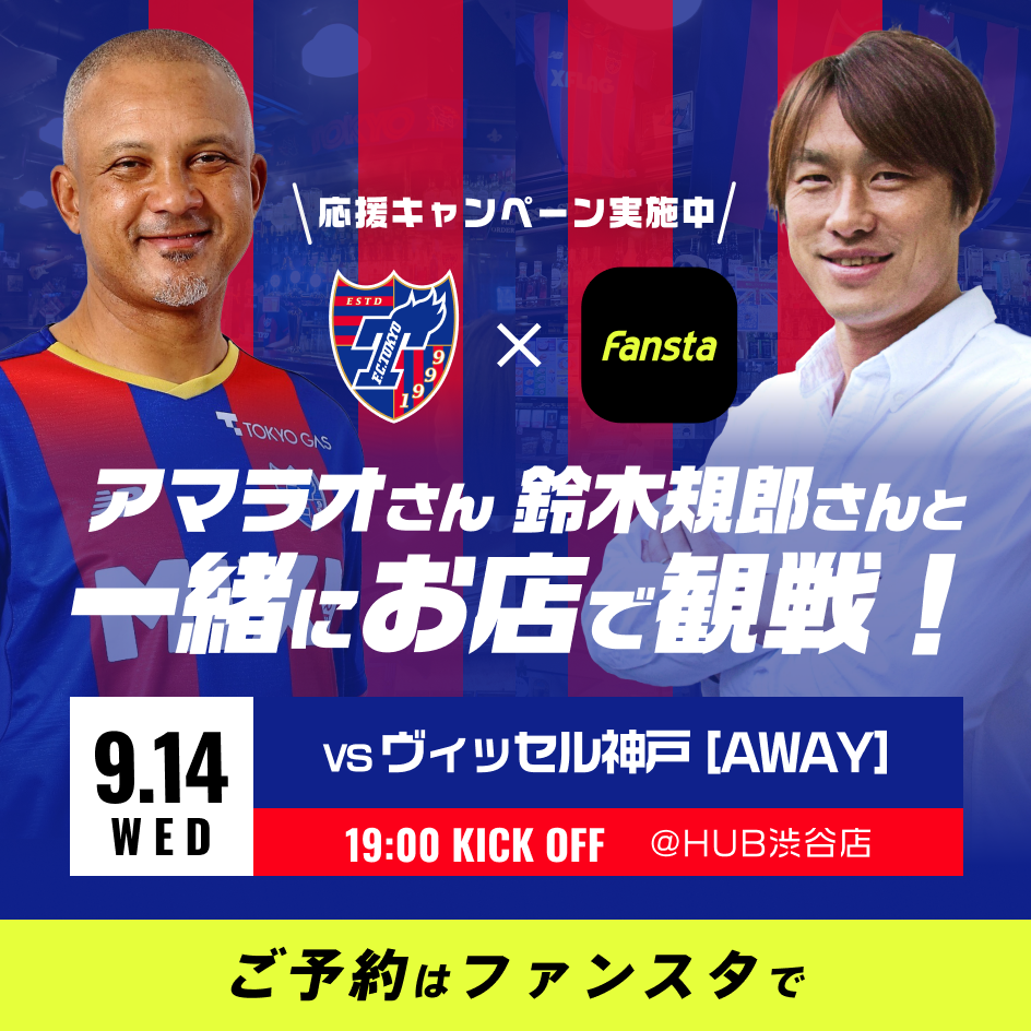 더욱이, 9월 14일(수) 비셀 고베전에서는 HUB 시부야점에서 클럽 OB 아마라오 씨와 스즈키 노리오 씨를 라이브 뷰잉 게스트로 모십니다.