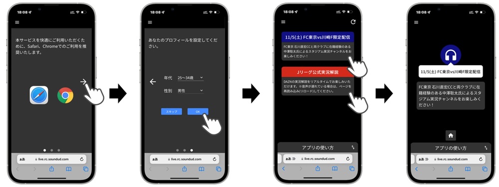 ・J리그 공식 중계 해설 청취에는 위치 정보 인증이 필요합니다. 미리 OS나 브라우저 앱 설정에서 위치 정보 서비스를 켜거나 허용해 주시기 바랍니다