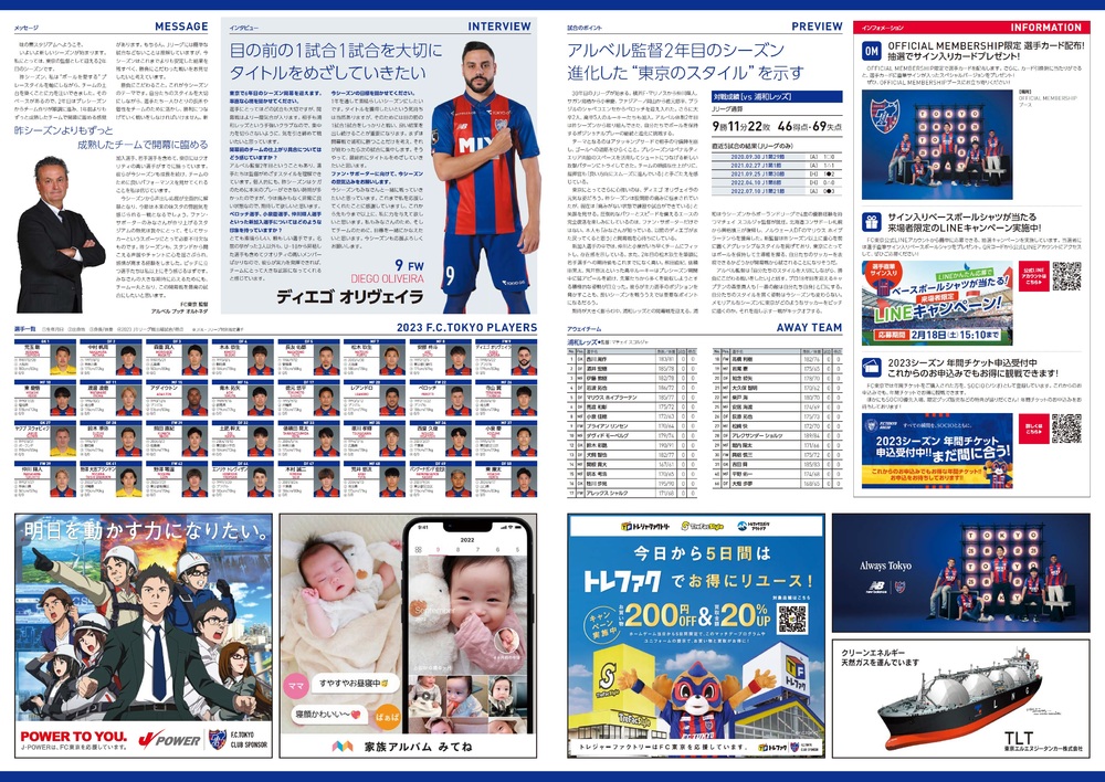 2월 18일(토) 2023 메이지 야스다 생명 J1 리그 제1절 vs 우라와 레즈(14:00 킥오프/아지노모토 스타디움) 공식 매치데이 프로그램에 대해 아래와 같이 안내드립니다.