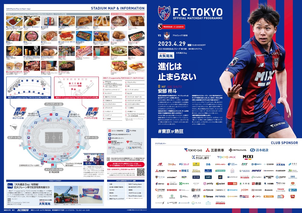 4월 29일(토·공휴일) 2023 메이지 야스다 생명 J1리그 제10절 vs 알비렉스 니가타(15:00 킥오프/아지노모토 스타디움) 공식 매치데이 프로그램에 대해 아래와 같이 안내드립니다.