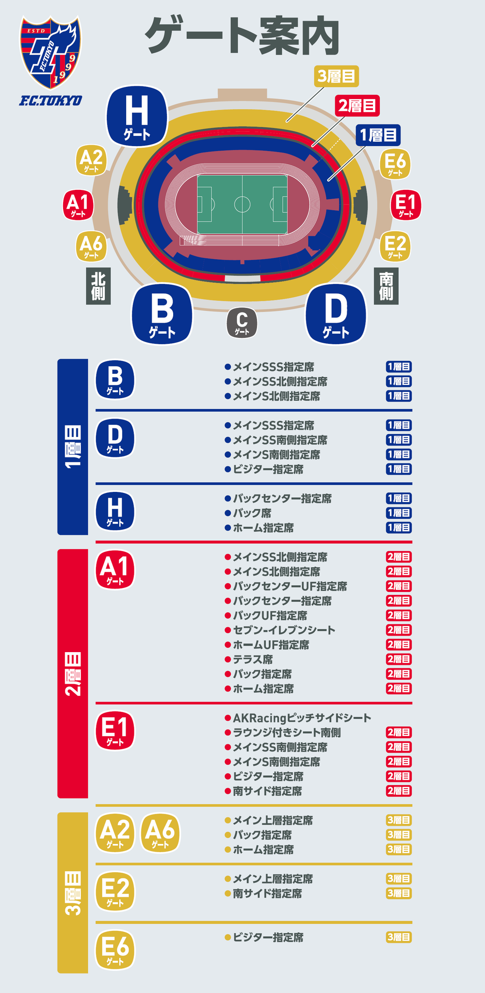 비지터 팀 유니폼 및 굿즈를 착용한 분은 북사이드 스탠드(1~3층)로의 통행이 불가능합니다. 또한 FC 도쿄 유니폼 및 굿즈를 착용한 분은 남사이드 스탠드 비지터 지정석 구역(1층~3층)으로의 통행이 불가능하니 주의해 주십시오.