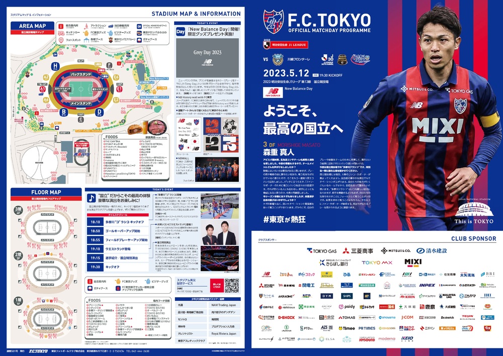 5월 12일(금) 2023 메이지 야스다 생명 J1리그 제13절 vs 가와사키 프론탈레(19:30 킥오프/아지노모토 스타디움) 공식 매치데이 프로그램에 대해 아래와 같이 안내드립니다.