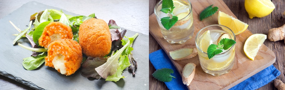 라이스 크로켓, 멘치카츠, 크로켓, 토르티야, 맥주, 하이볼, 진저 하이볼