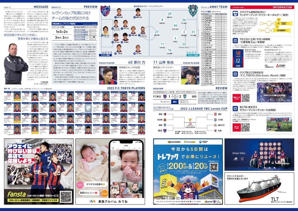9월 6일(수) 2023 J리그 YBC 르방컵 프라임 스테이지 준준결승 1차전 vs 아비스파 후쿠오카(19:00 킥오프/아지노모토 스타디움) 공식 매치데이 프로그램에 대해 아래와 같이 안내드립니다.