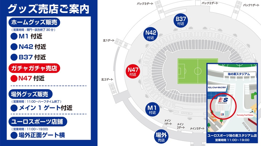 당일에는 스타디움 내 굿즈 매장 및 유로스포츠 아지노모토 스타디움점에서