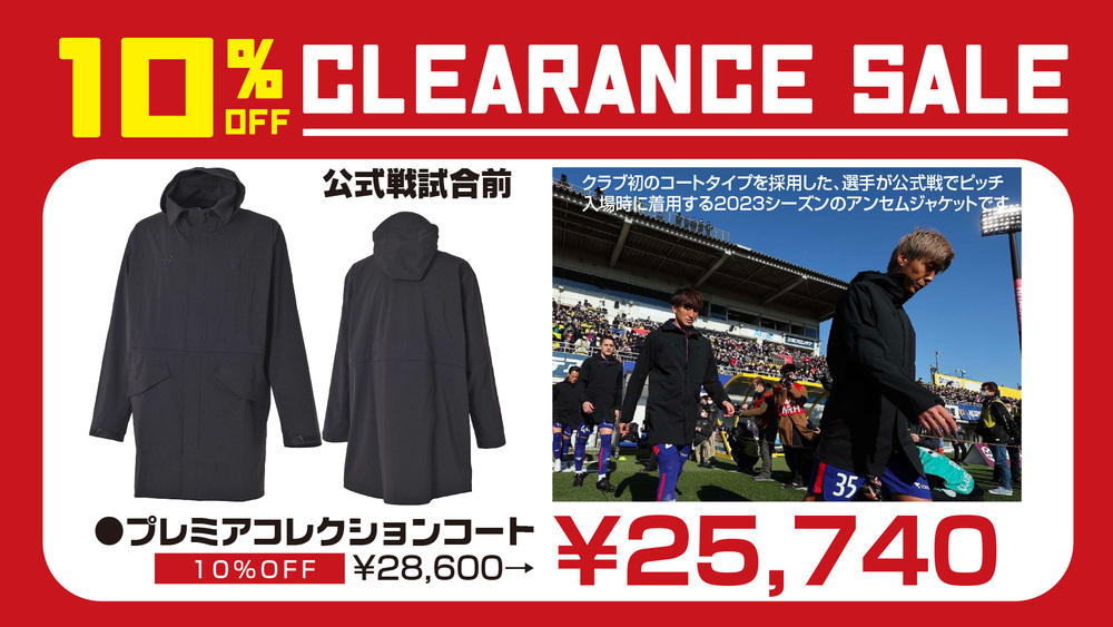 당일에는 경기장 내 굿즈 매장 및 유로스포츠 아지노모토 스타디움점에서 최대 30% 할인 클리어런스 세일을 실시합니다.
