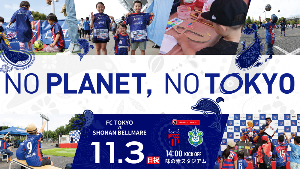 11월 3일(일요일, 공휴일) 2024 메이지 야스다 J1리그 제35라운드 vs 쇼난 벨마레(14:00 킥오프/아지노모토 스타디움)에서 『NO PLANET, NO TOKYO』를 개최합니다.