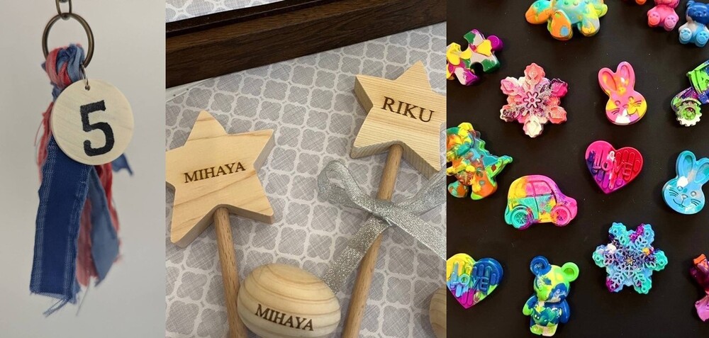 아오아카 파크에서 사용하지 않게 된 천막이나 간벌재, 남은 크레용 등을 사용해 오리지널 아이템을 만들어 보아요!