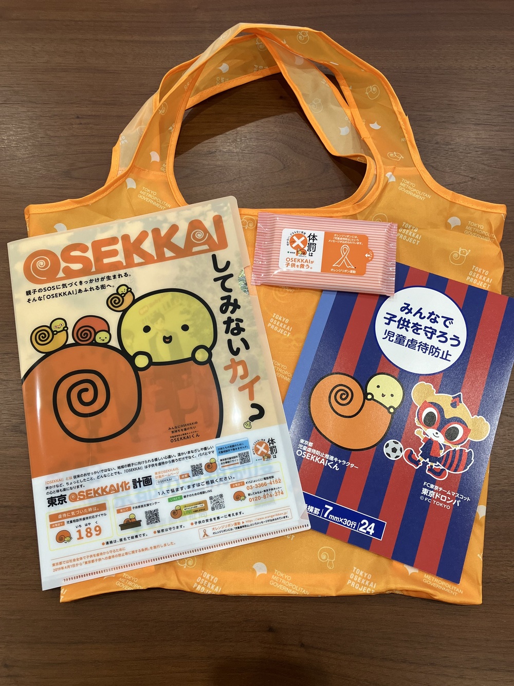 도쿄도는 아동 학대 방지 추진 캐릭터 「OSEKKAI군」과 함께 오렌지 리본 캠페인의 활동을 더욱 확대해 나가겠습니다.