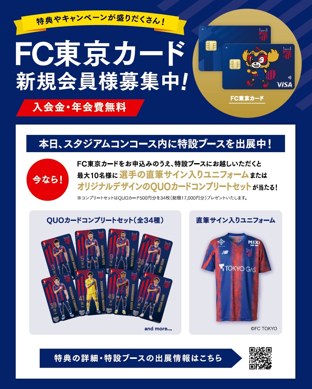 이번 부스에서는 FC 도쿄 카드를 신규 신청하신 분을 대상으로 FC 도쿄 선수들이 디자인한 오리지널 QUO 카드 컴플리트 세트와 선수 사인 유니폼이 당첨되는 추첨회를 실시합니다!