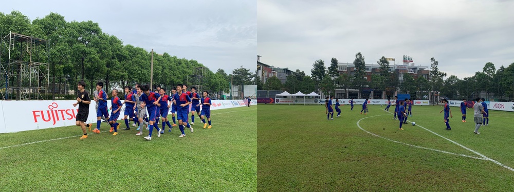 점심 식사 후에는 「제6회 베트남 일본 국제 유스컵 U−13 대회」 개회식에 참가하여, 바로 옆에 선 베트남 팀 선수들과 적극적으로 교류하려는 모습도 보였습니다.