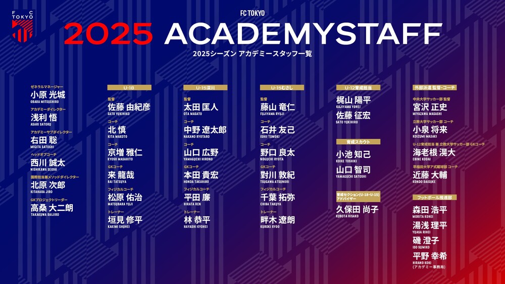 | U-12 육성 담당 겸 릿쿄대학 축구부 GK 코치 | 에비네 코다이 |