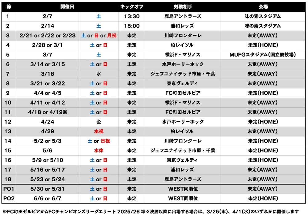 2026년 2월부터 6월까지 개최되는 '메이지 야스다 J1 백년 구상 리그' 지역 리그 라운드 각 절 대진 카드 및 플레이오프 라운드 제2전 홈 개최가 결정되어 알려드립니다.