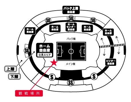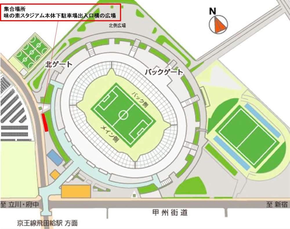 경기 당일, 킥오프 60분 전에 아지노모토 스타디움 본체 아래 주차장 출입구 옆 광장에 집합