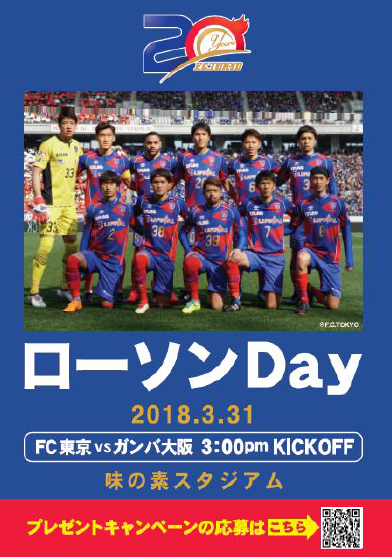 이번에 FC 도쿄에서는 3월 31일(토) 2018 메이지 야스다 생명 J1 리그 제5절 vs 감바 오사카전(15:00 킥오프/아지노모토 스타디움)에서 클럽 스폰서인 「주식회사 로손」의 협력으로 『로손 Day』를 개최합니다. 가족, 친구분들과 함께 꼭 아지노모토 스타디움에 방문해 주시기 바랍니다!