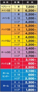 ※『백 SB 지정석』『홈 SG 지정석』은 SOCIO만 판매합니다.