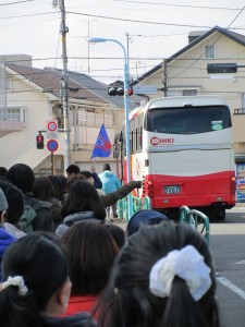 立春過ぎての寒の戻り、手がかじかむようなとても寒い朝でしたが、「昨日は(ACL)惜しかったね!」「27日行きますヨ!」「勝ちましょう!」などとお声掛けもいただき、またいつもがっちりと握手をしてくださる方もいらっしゃって、配布のテンションもあがっていました。