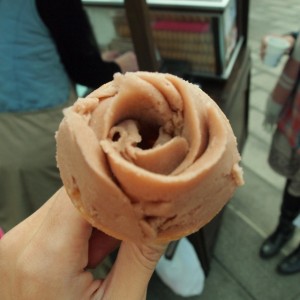このエリアではよく猫を見かけます。おばあちゃんが盛ってくれるチリンチリンアイスもおすすめです。可愛いバラの形にアイスを盛ってくれます。