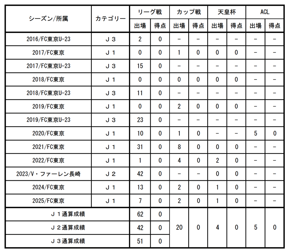 □出場記録(2025シーズン終了時点)