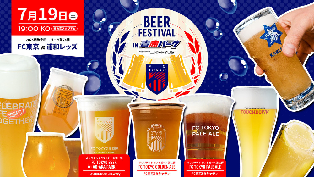 19 de julho (Sáb) 2025 Meiji Yasuda J1 League Rodada 24 vs Urawa Reds (kickoff às 19:00 / Ajinomoto Stadium), AO-AKA PARK supported by JOYPOLIS (fora do estádio), e AO-AKA PARK supported by JOYPOLIS, informações sobre alimentos e bebidas vendidos nas lojas do saguão interno do estádio (dentro do estádio).