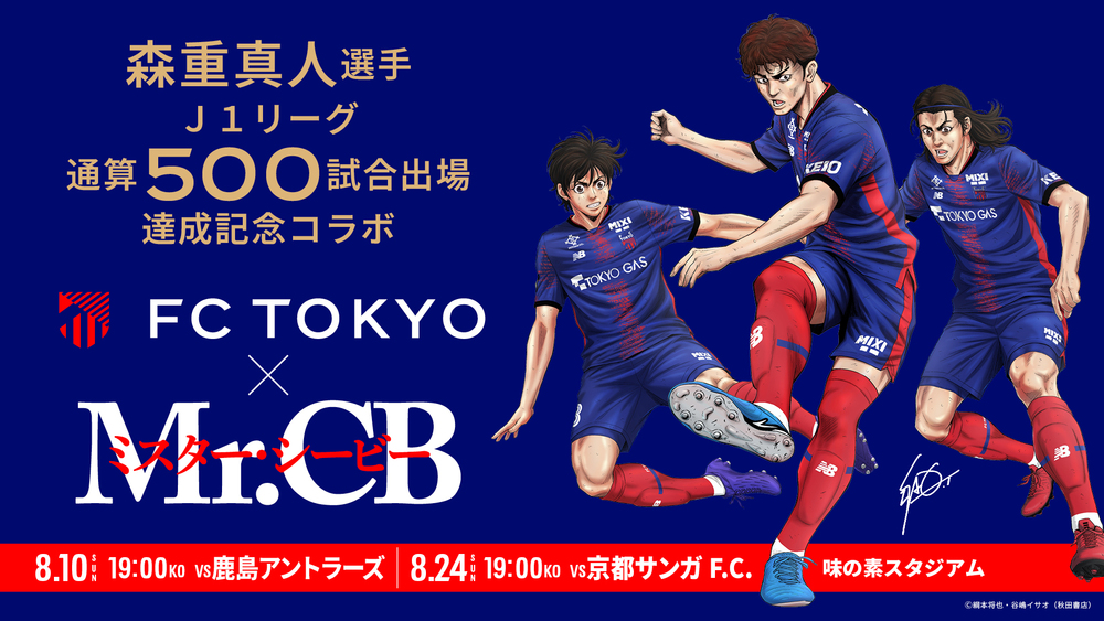 Gostaríamos de informar que, para comemorar a marca de 500 jogos na J1 League do jogador Masato MORISHIGE, foi decidida a colaboração entre o FC Tokyo e o mangá de futebol 'Mr.CB', que é serializado na revista "Young Champion" (Akita Shoten) e tem como protagonista um zagueiro central, conforme descrito abaixo.