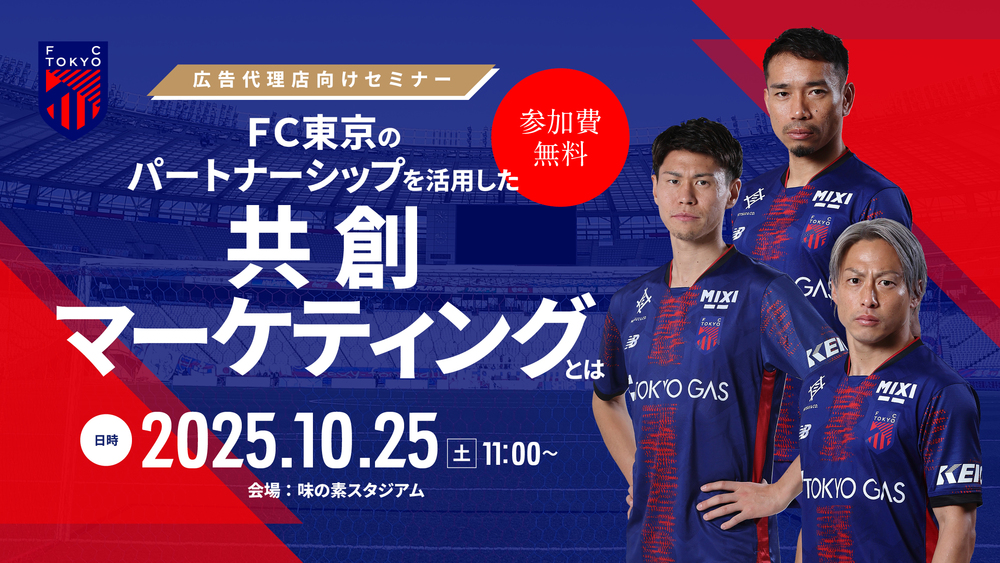 Realizaremos um seminário para agências de publicidade intitulado "O que é o marketing colaborativo utilizando a parceria do FC Tokyo". Apresentaremos casos que abordam a resolução de desafios empresariais e sociais por meio da parceria do FC Tokyo, que utiliza o poder de comunicação do esporte e suas conexões sociais.